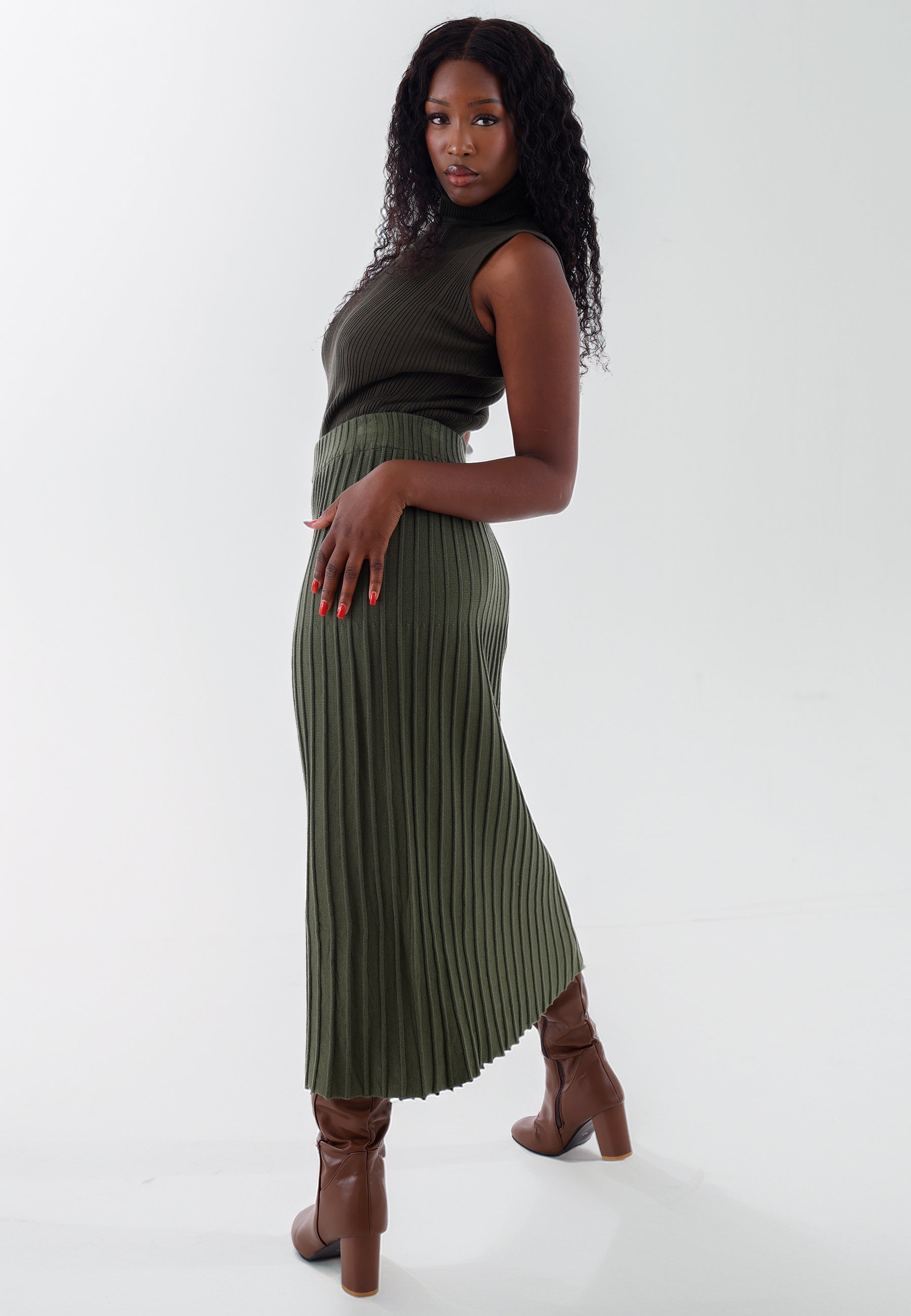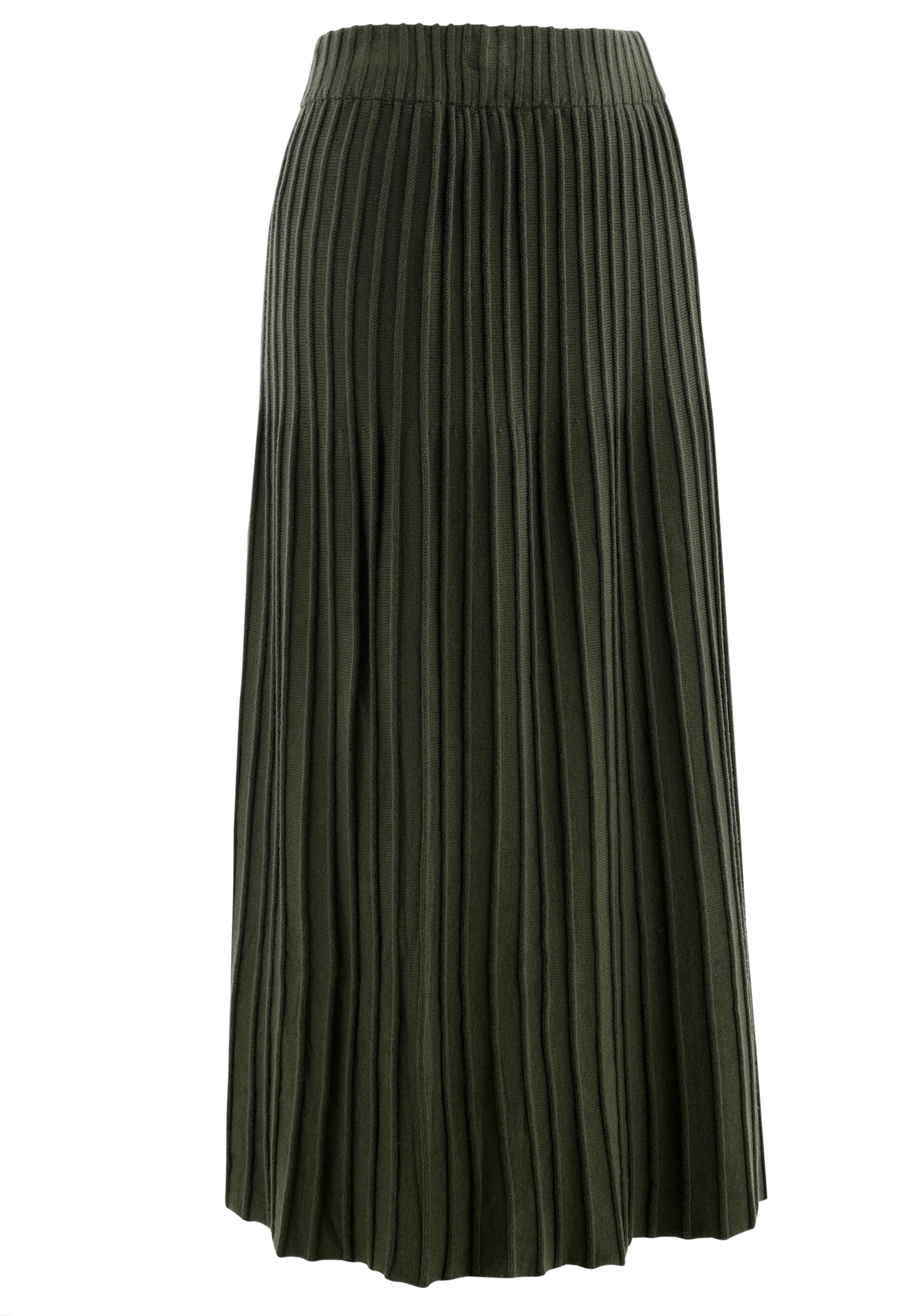 Dieser lange Strickrock in Plissee-Optik vereint Komfort und Stil. Die feine Faltenstruktur verleiht dem Rock einen fließenden Fall und eine feminine Silhouette. Der elastische Bund sorgt für eine bequeme Passform und macht den Rock zu einem vielseitigen Kombipartner.