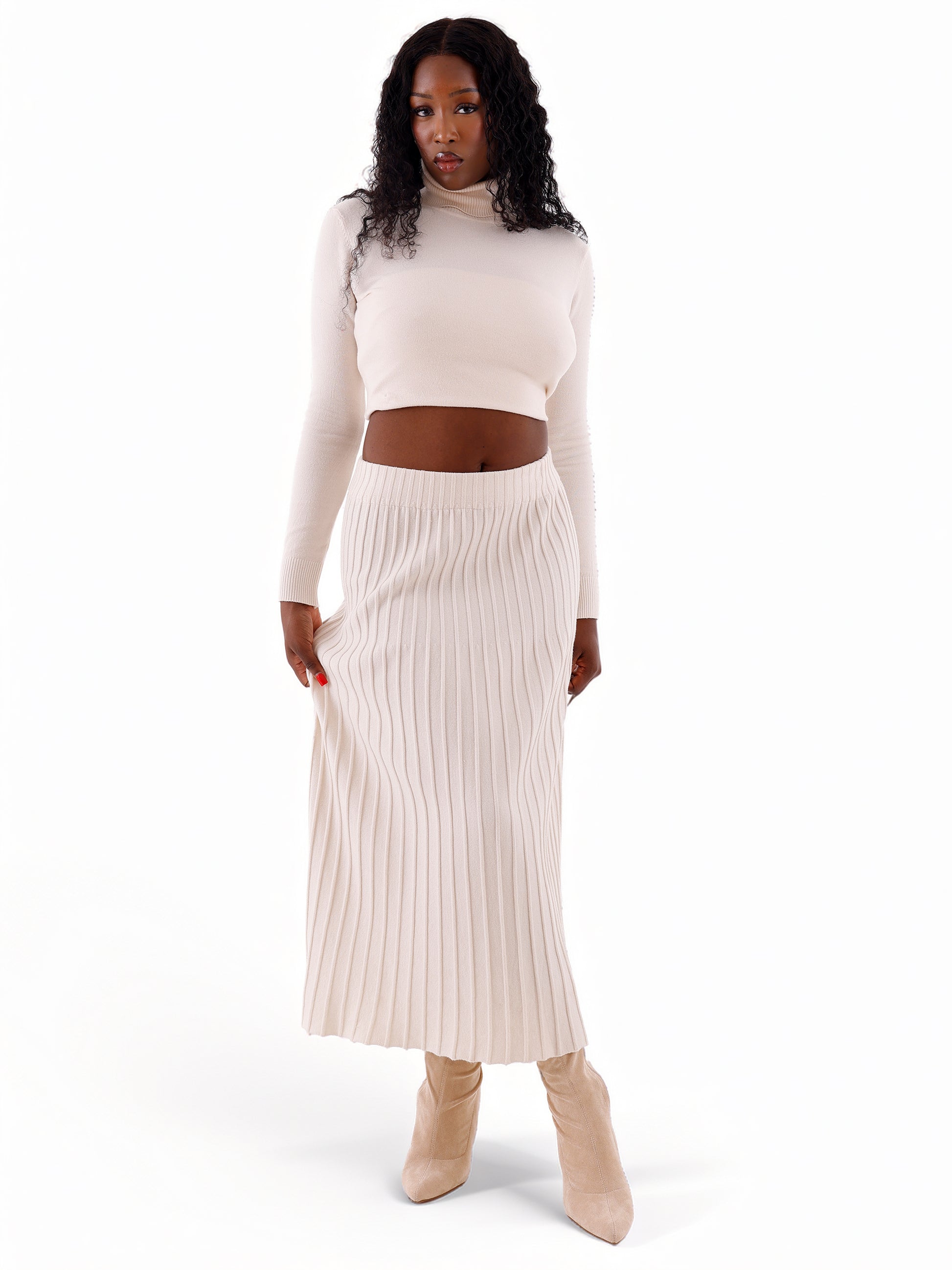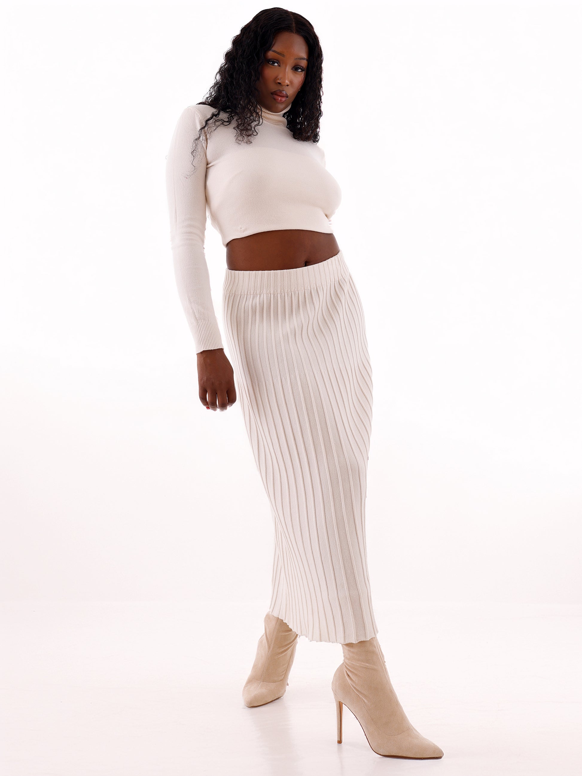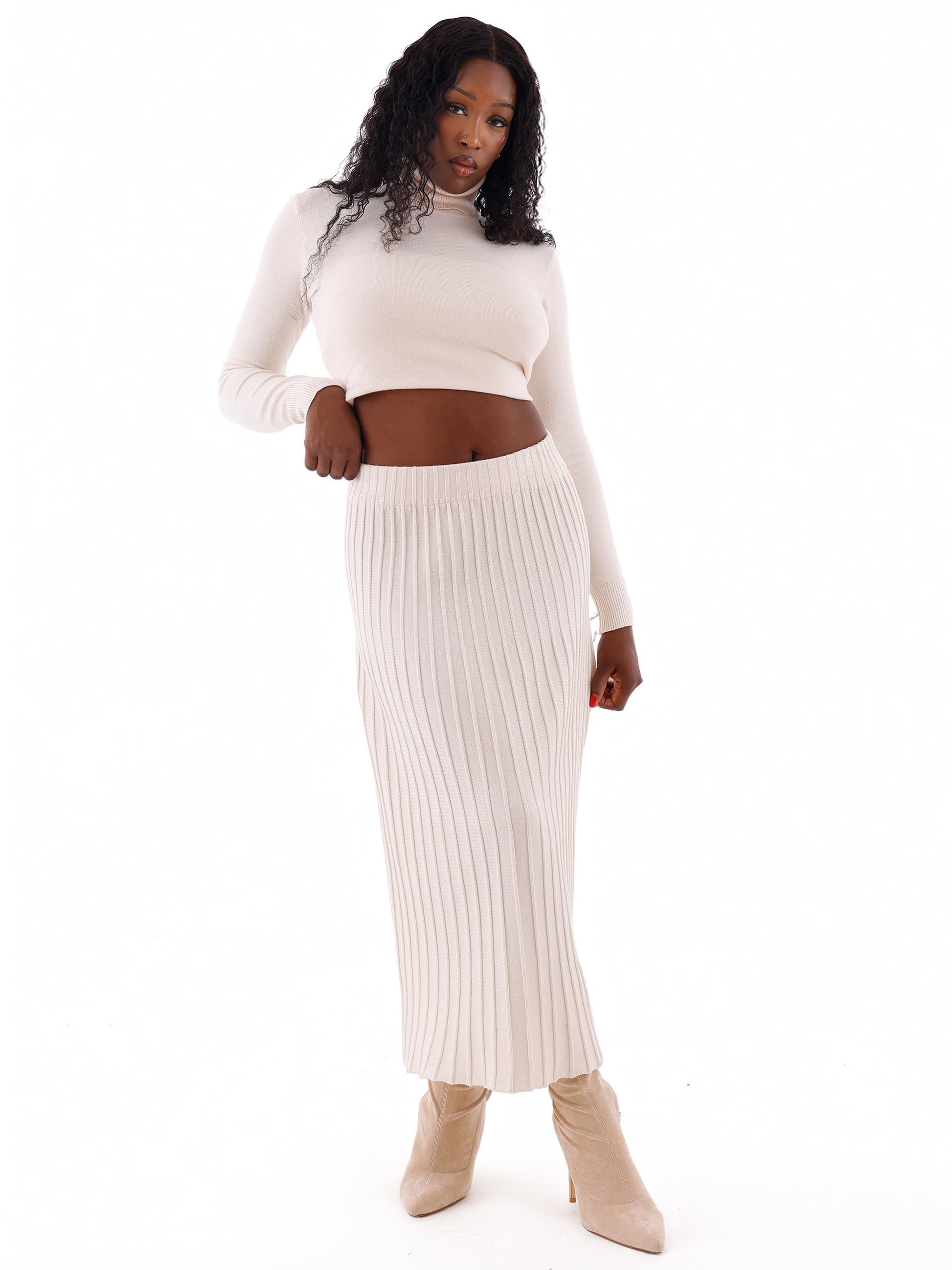 Langer Strickrock in Rippoptik – One Size, elastischer Bund