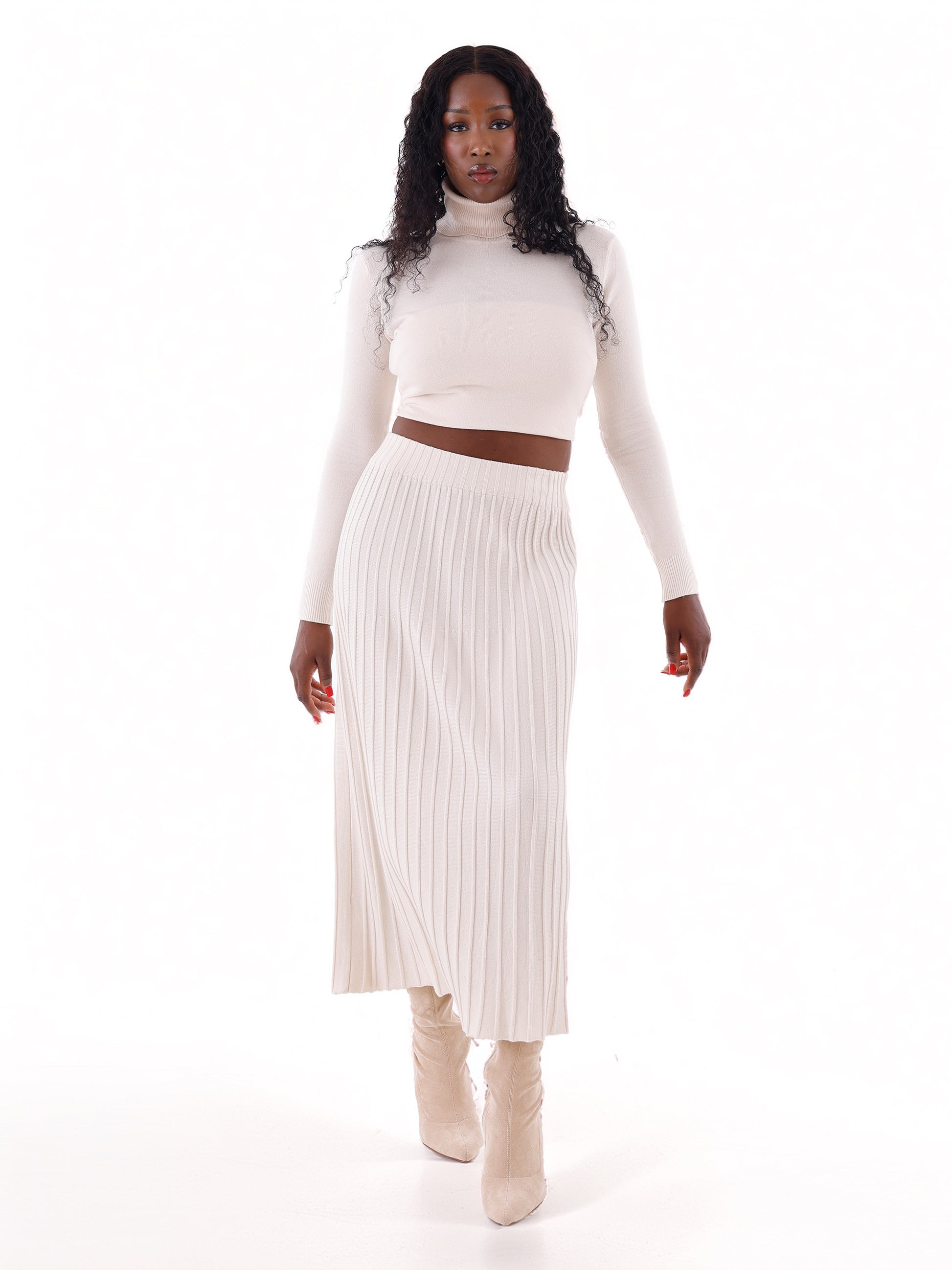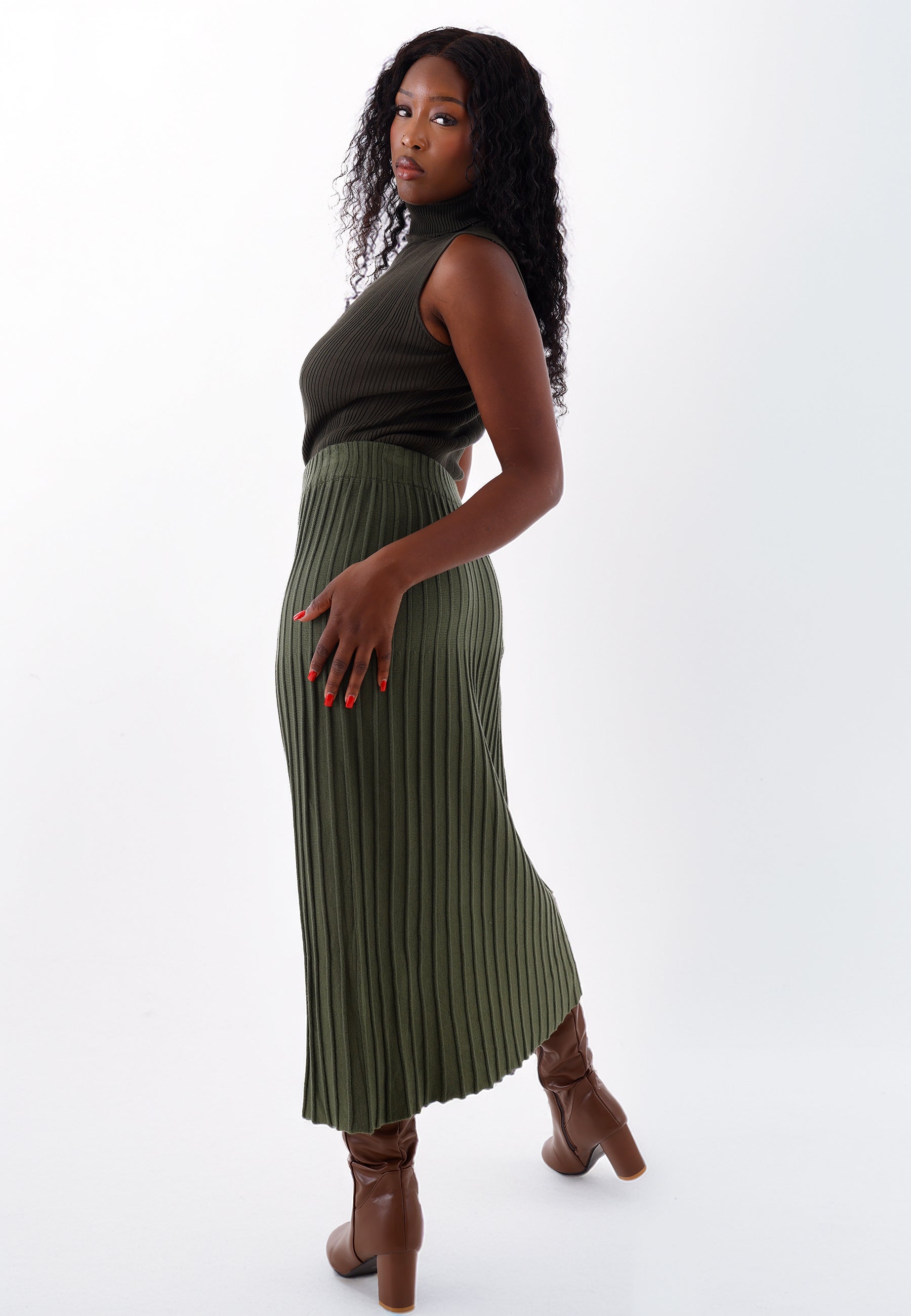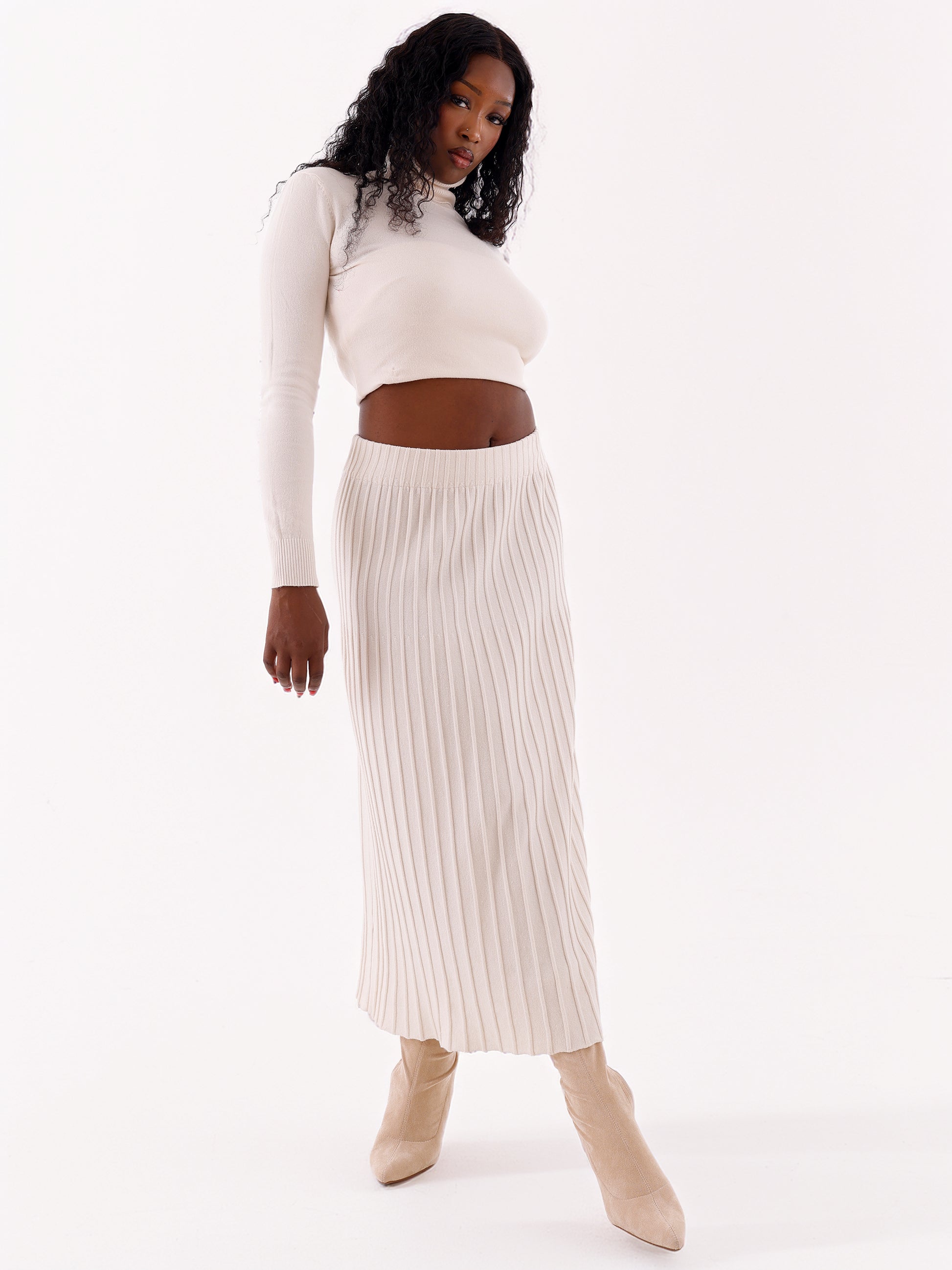 Langer Strickrock in Rippoptik – One Size, elastischer Bund