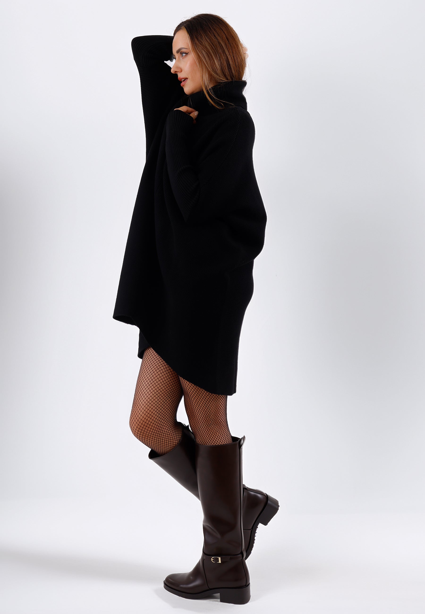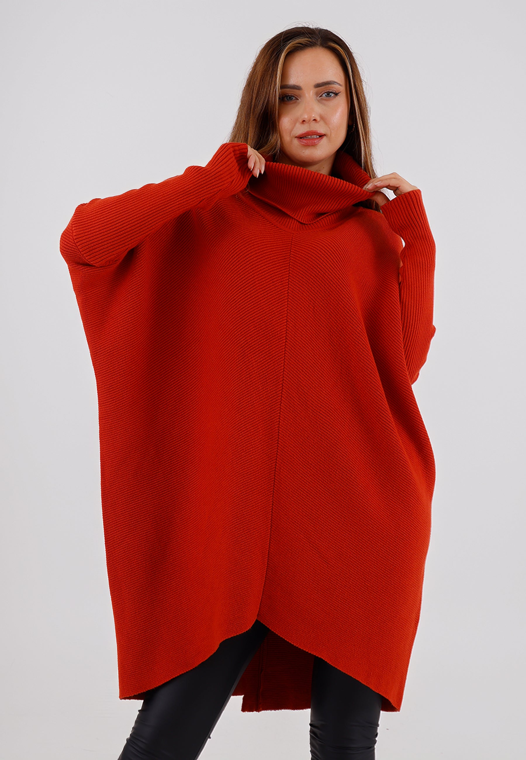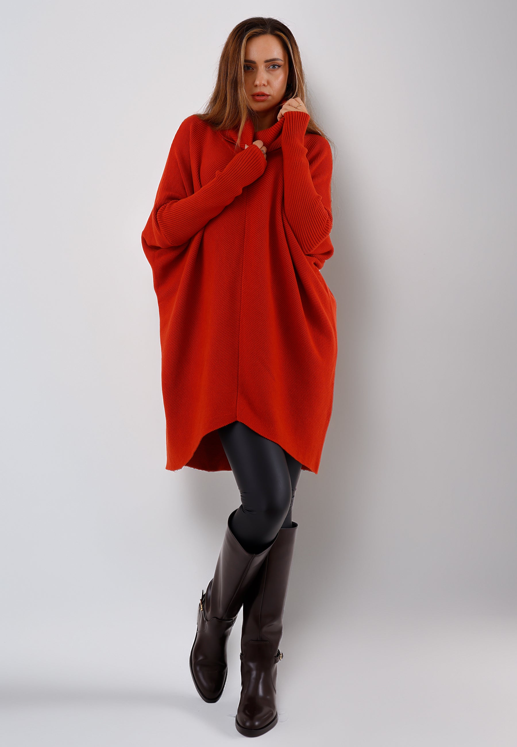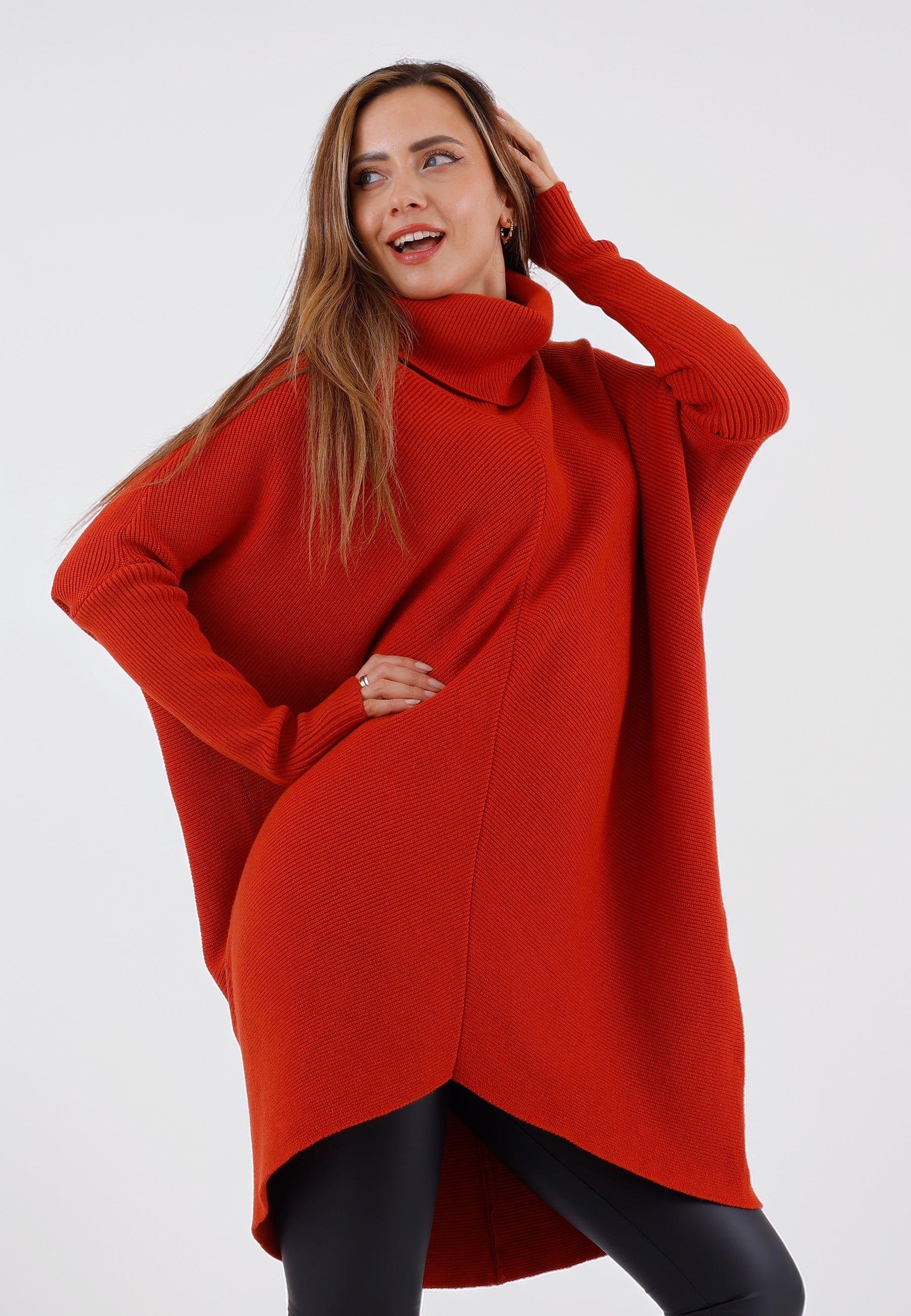• Asymmetrischer Saum & Rollkragen