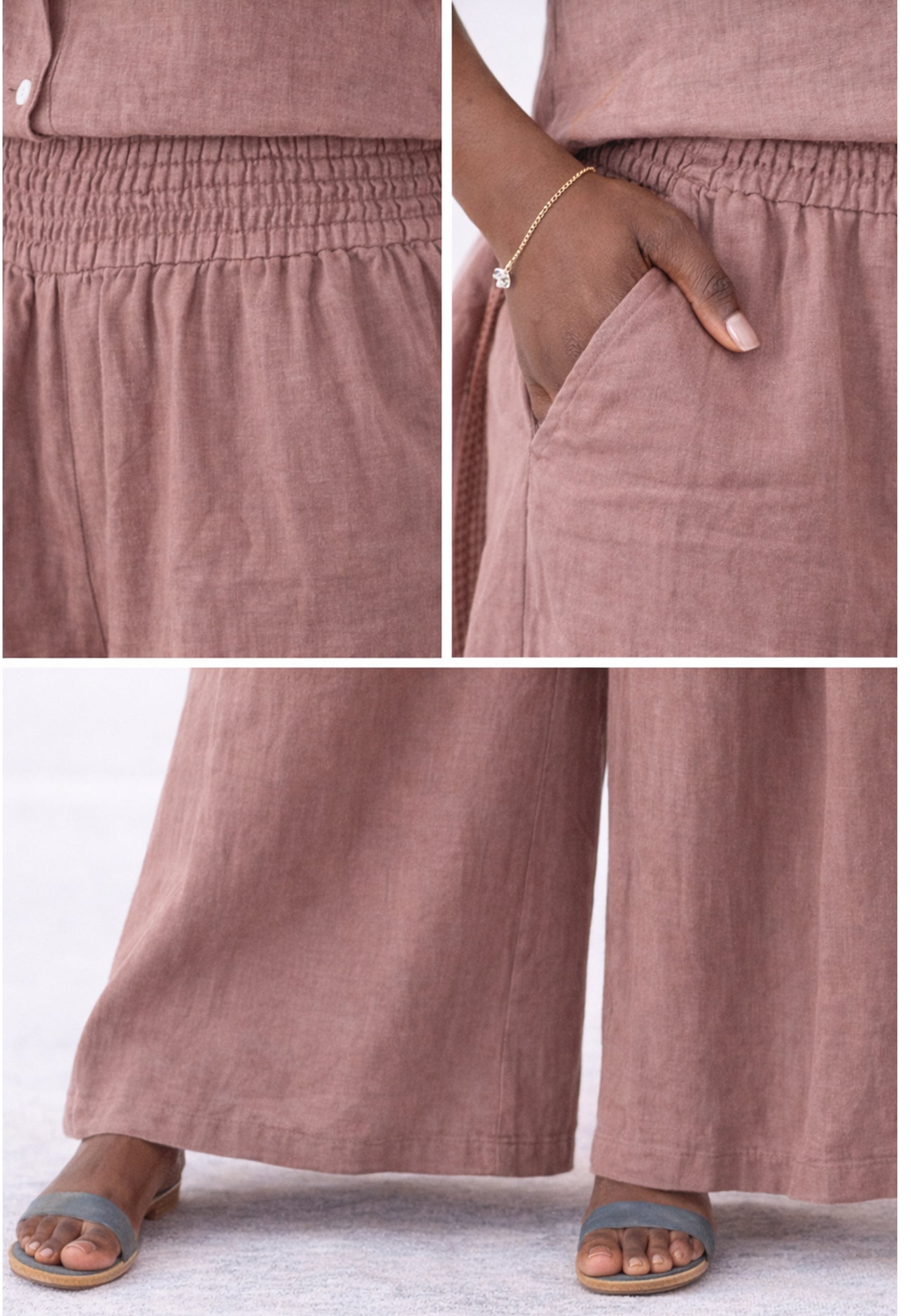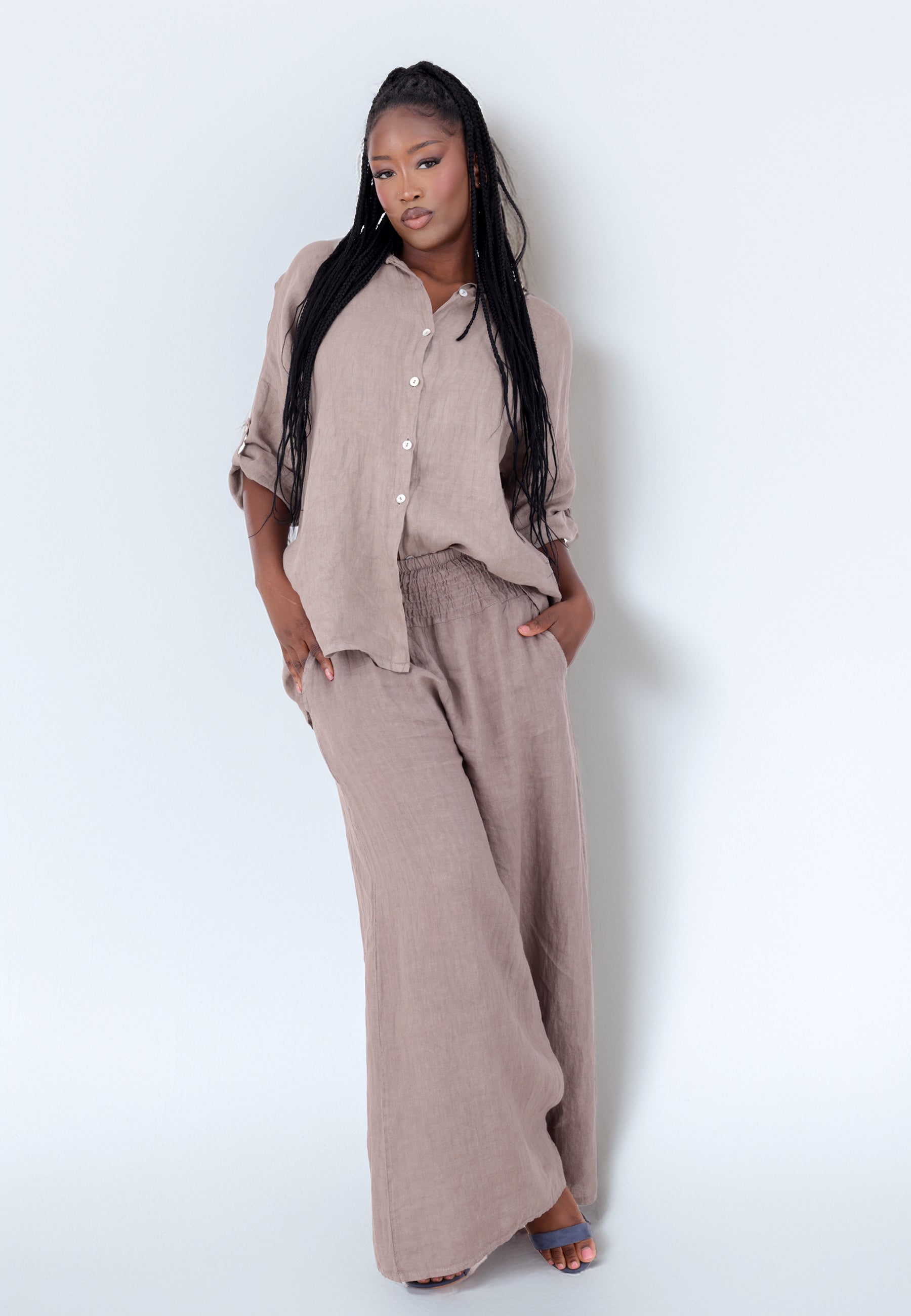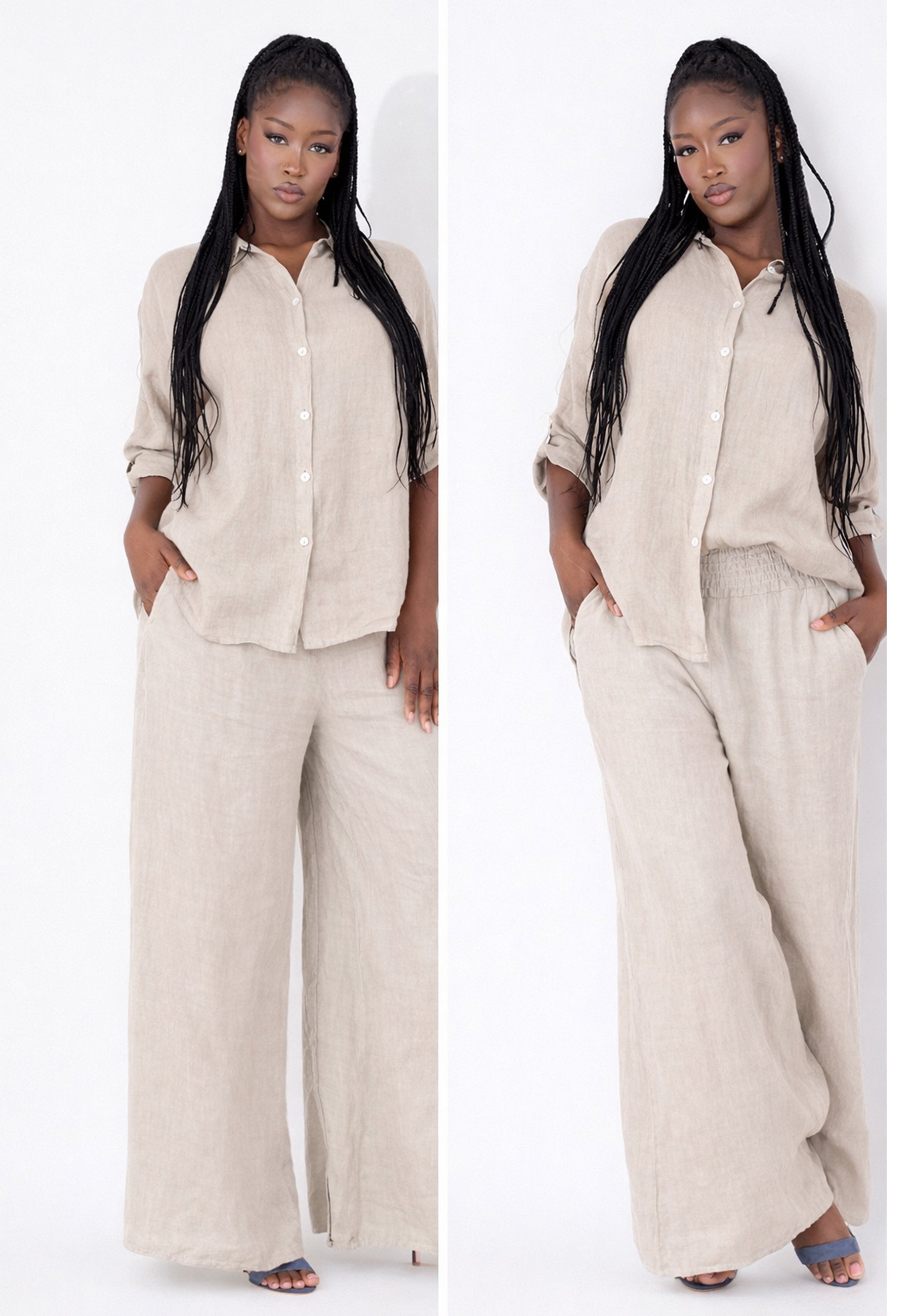 • Hose aus 100 % Leinen – atmungsaktiv, leicht und natürlich