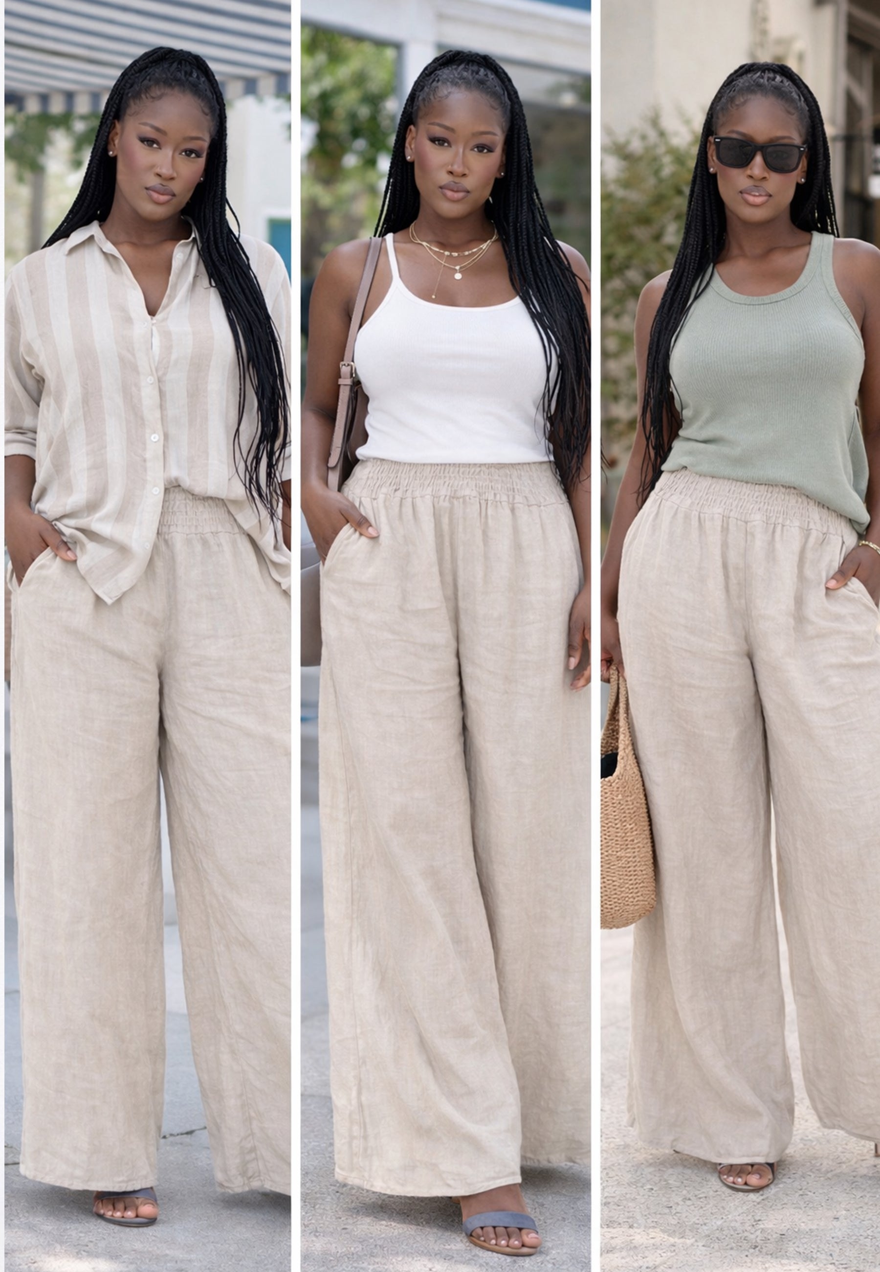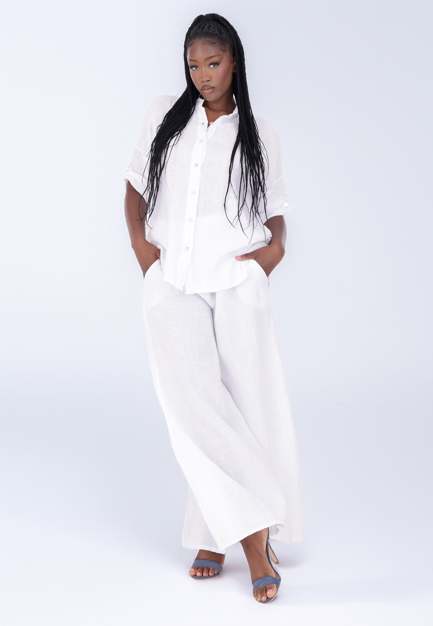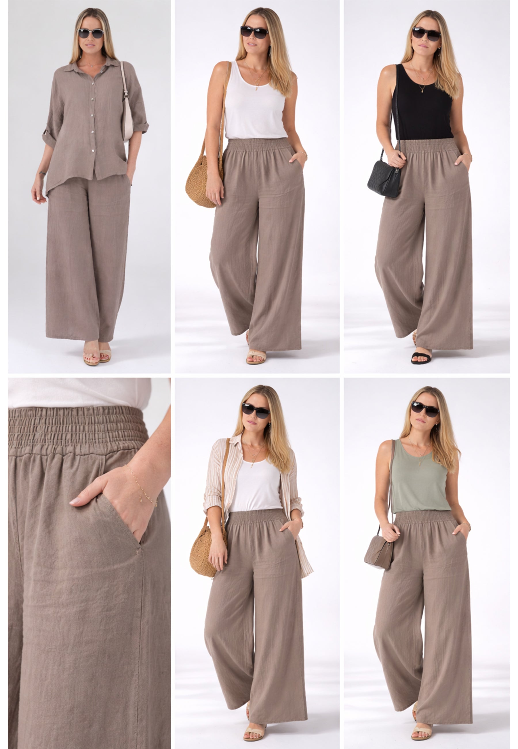 • Hose aus 100 % Leinen – atmungsaktiv, leicht und natürlich