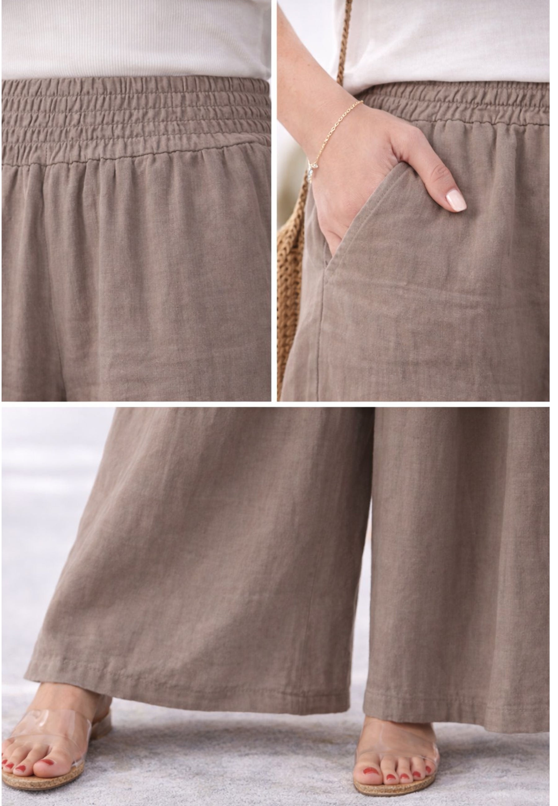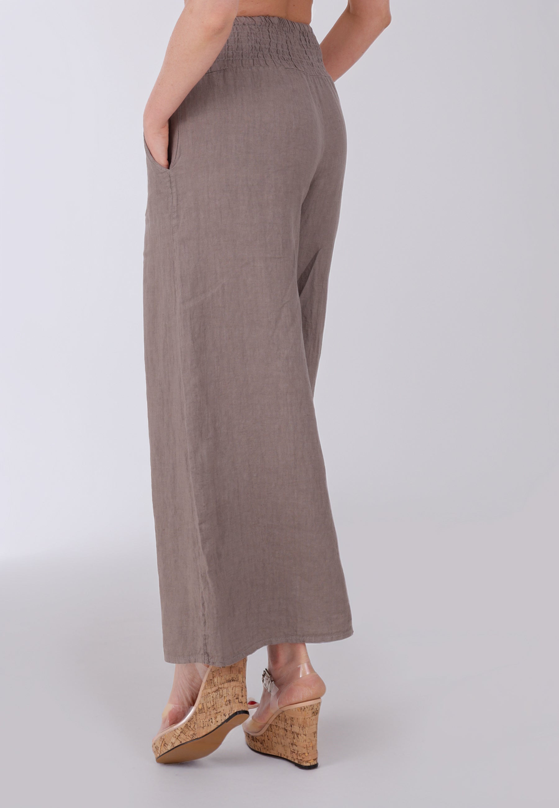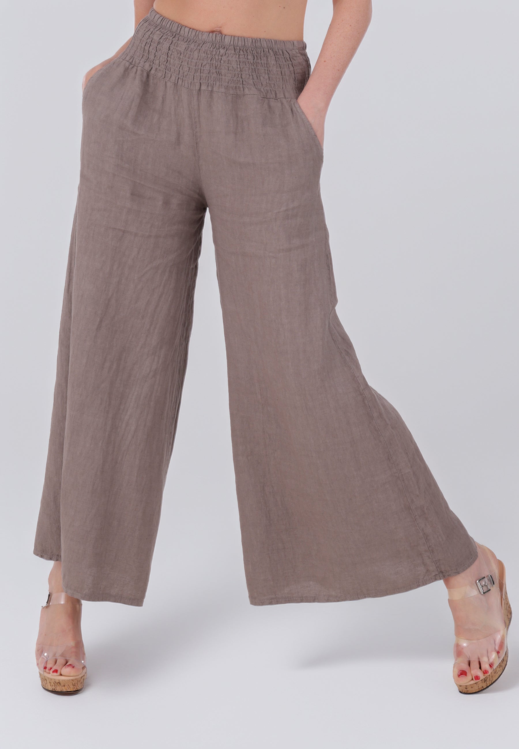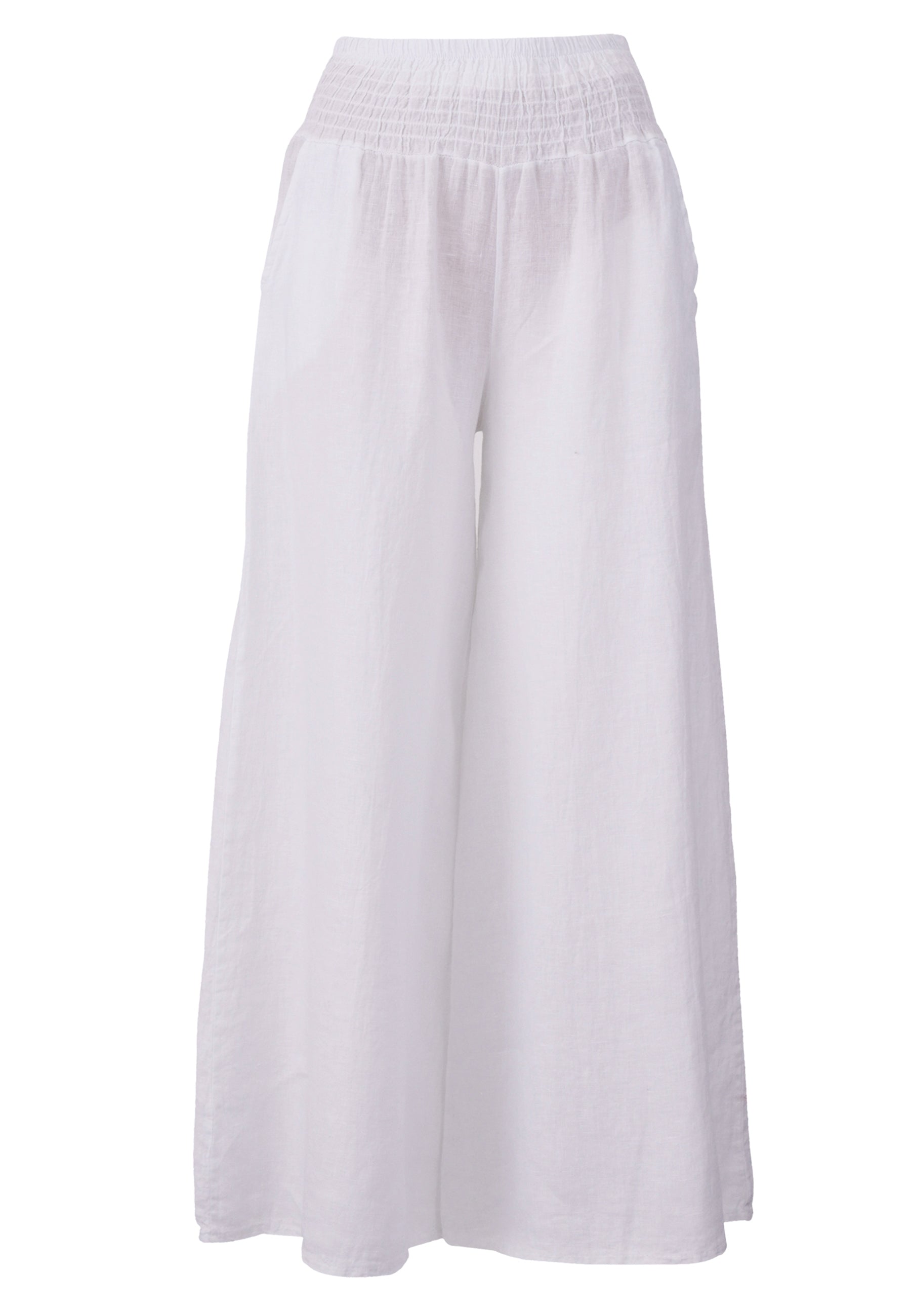 Leinen-Hose mit Smokbund & weitem Bein – One Size (34–42)