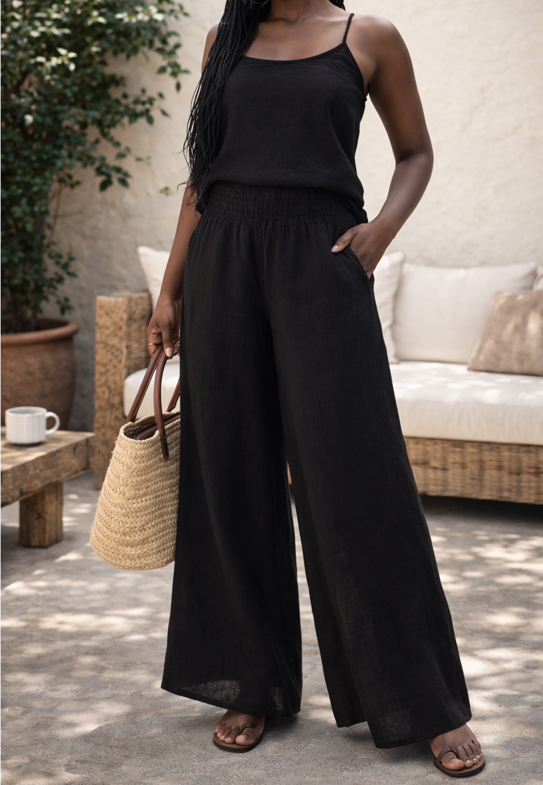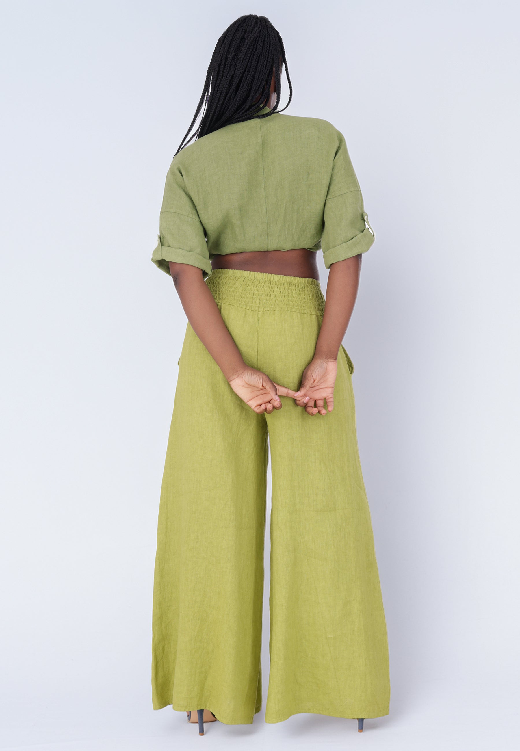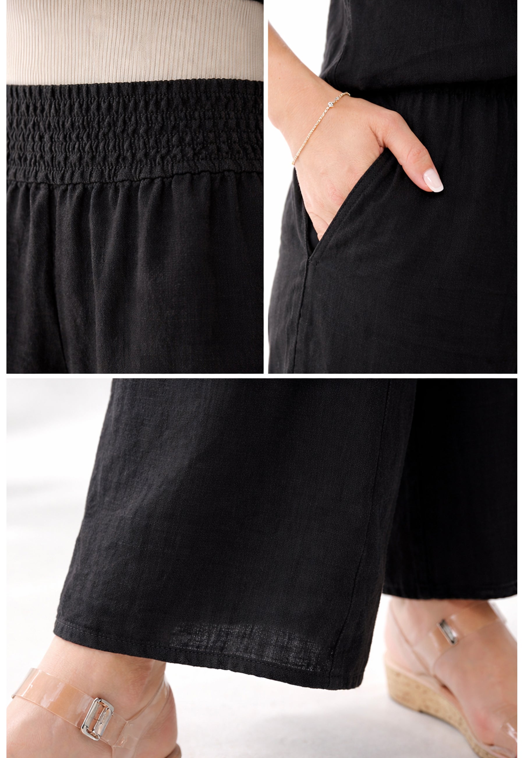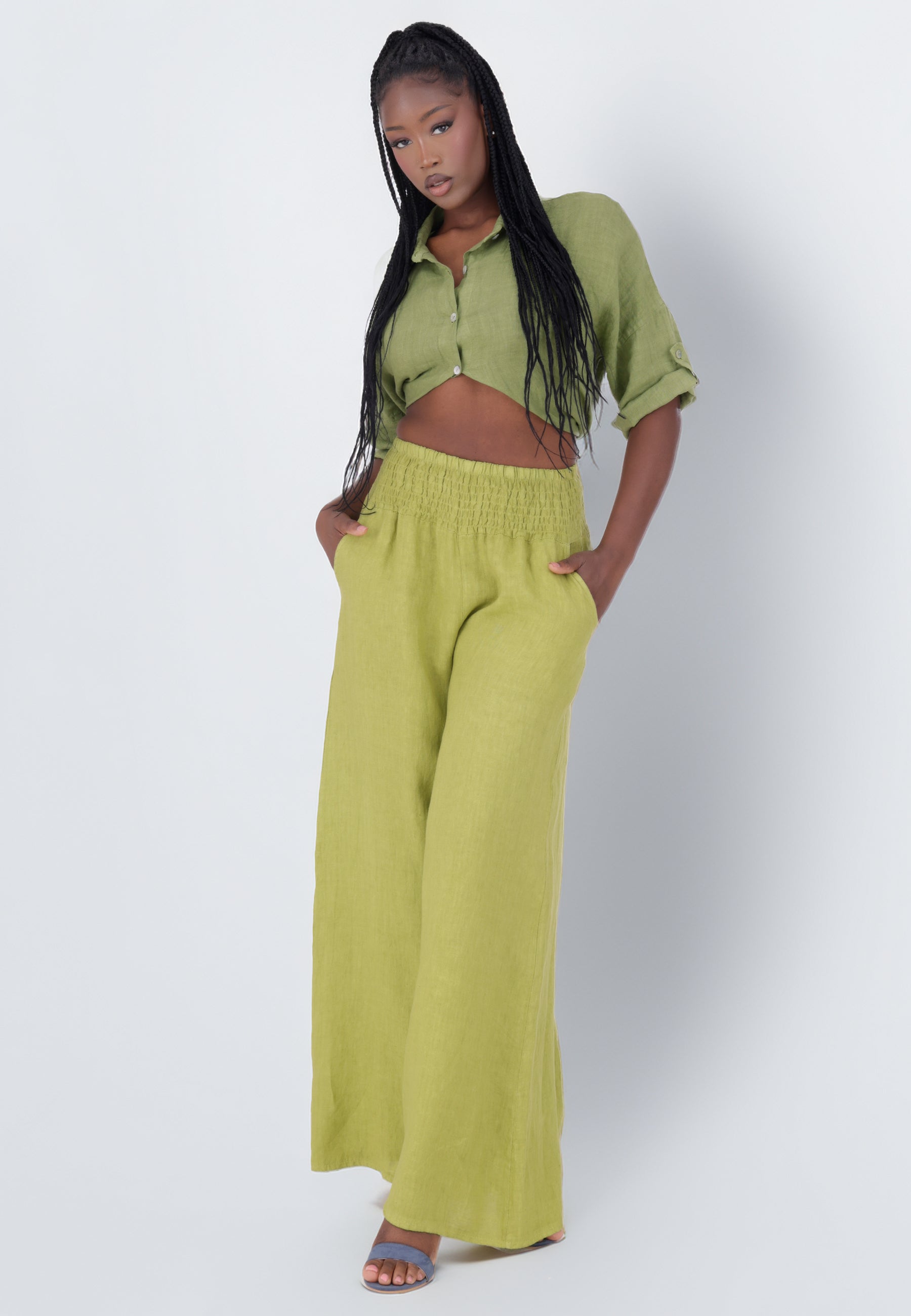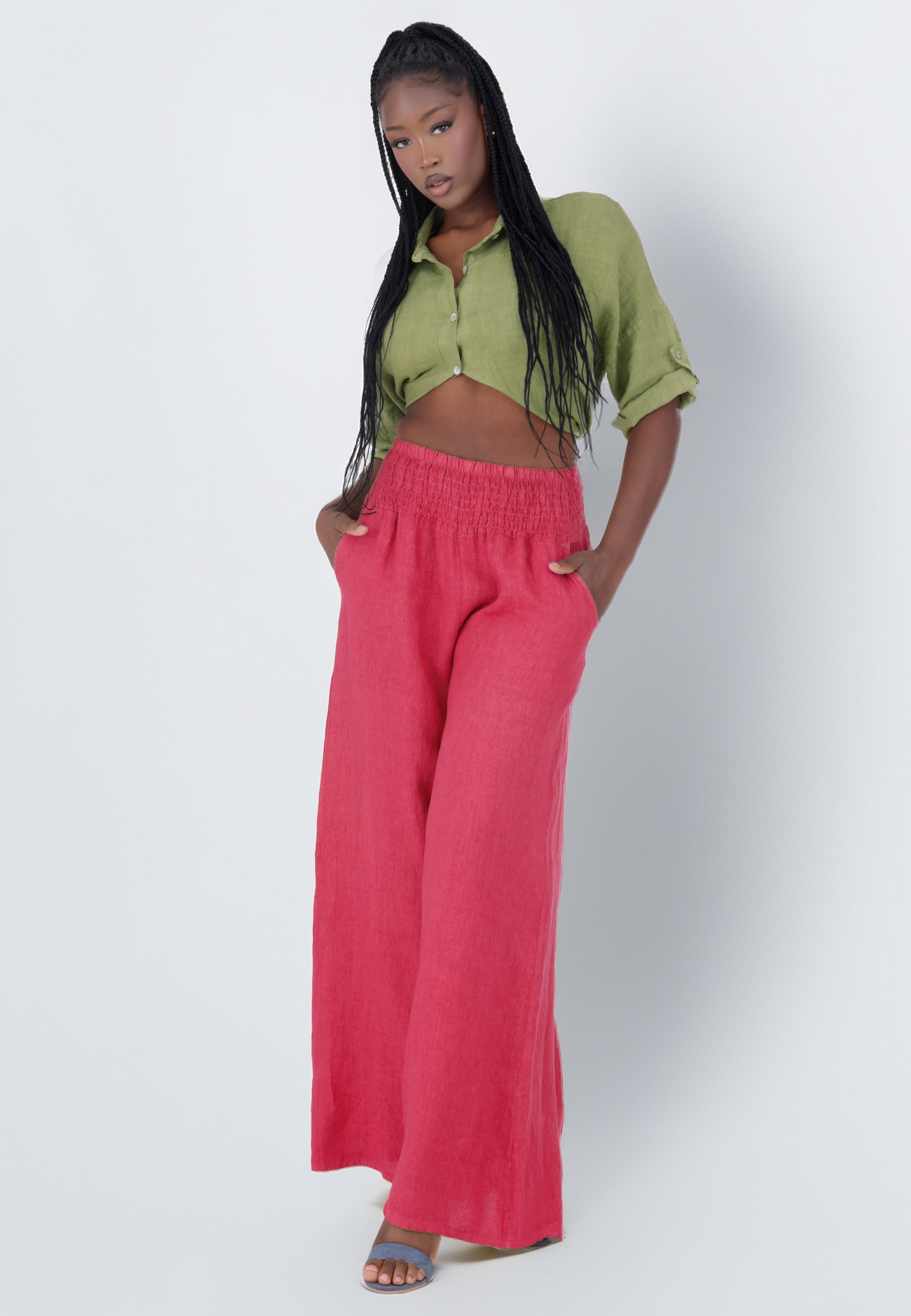 Leinen-Hose mit Smokbund & weitem Bein – One Size (34–42)