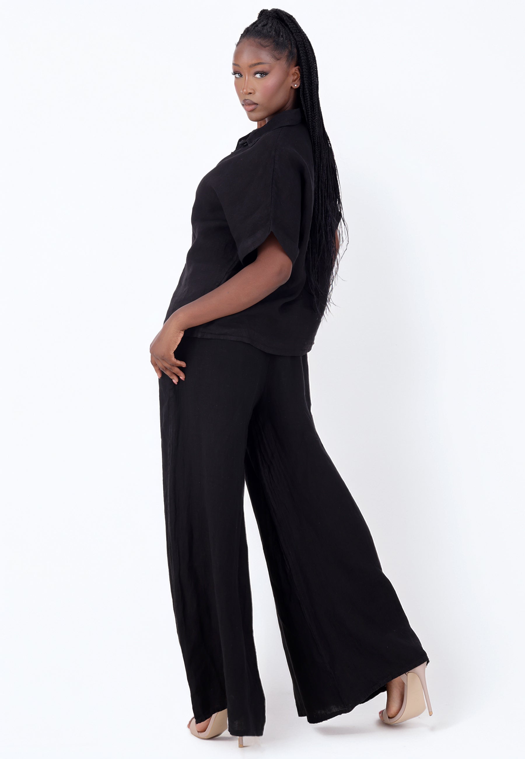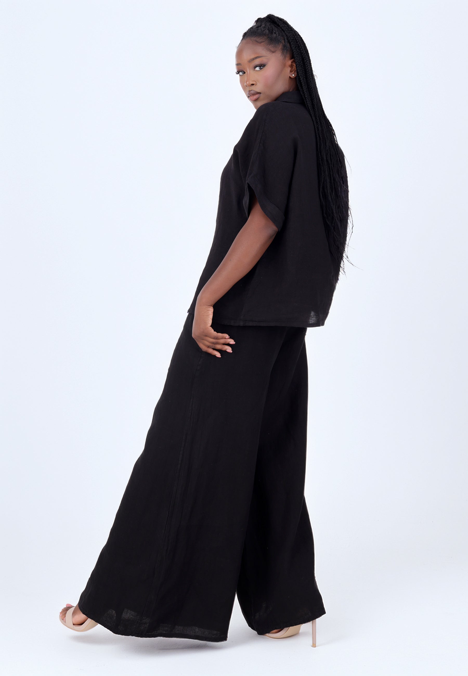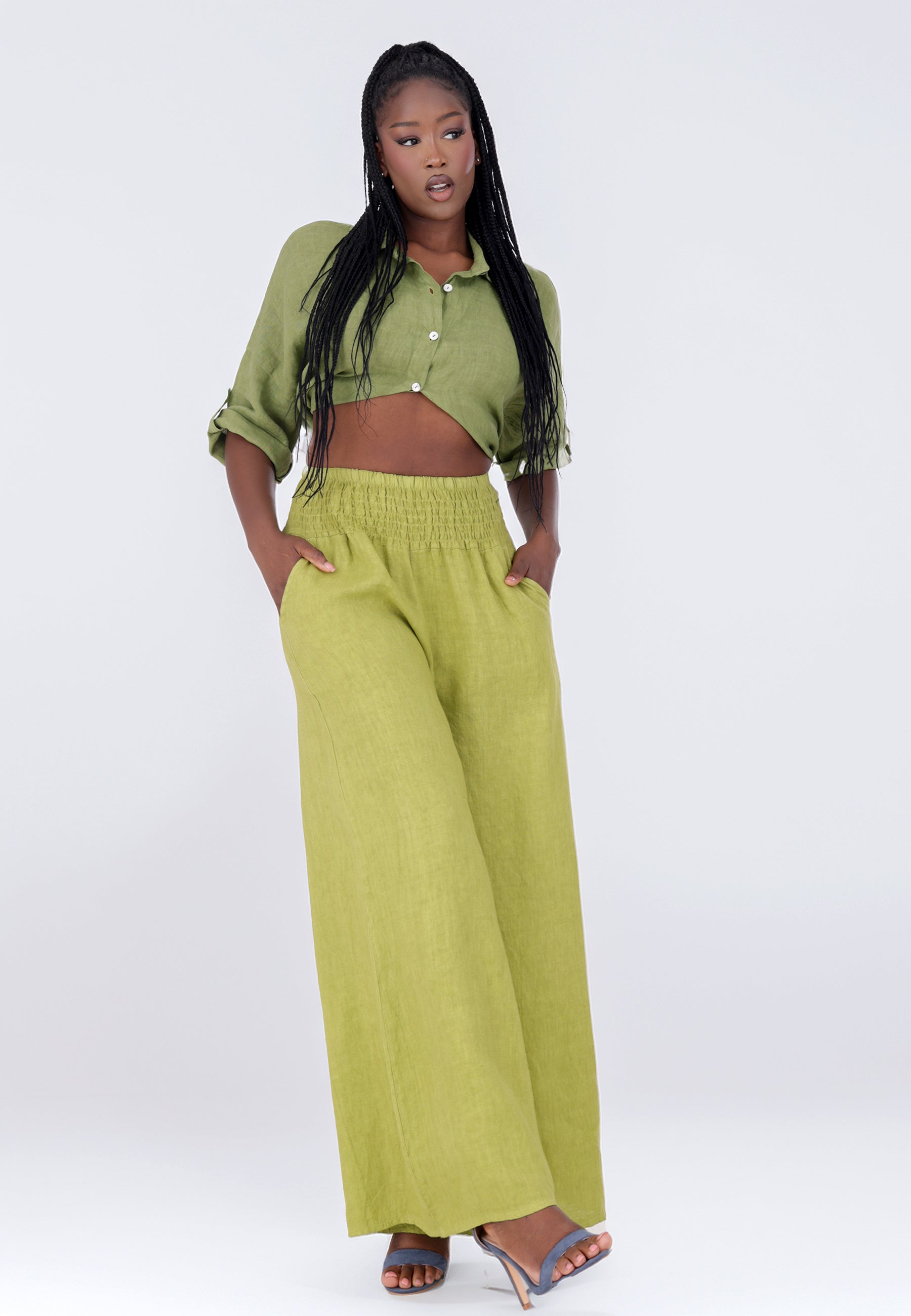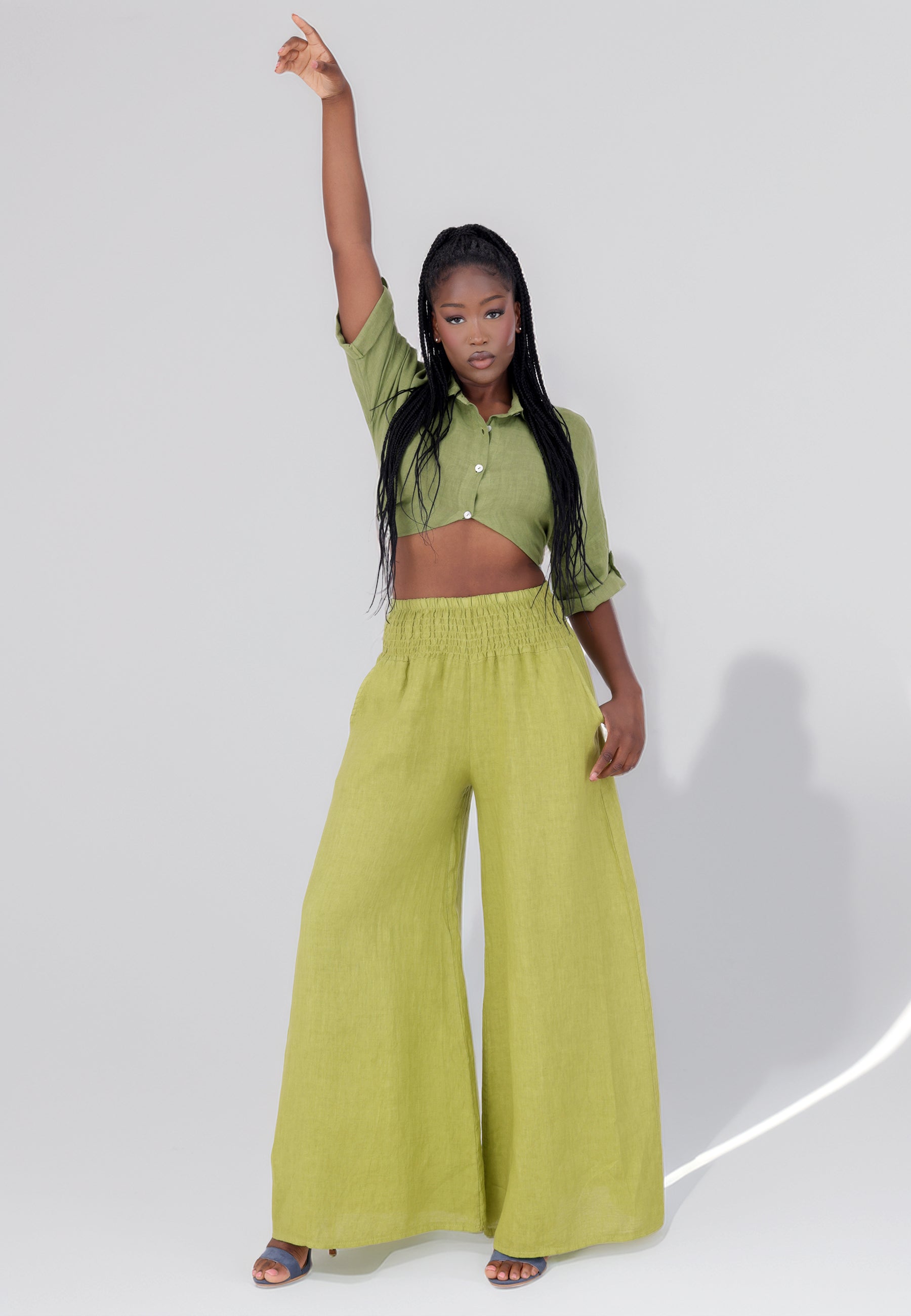 Leinen-Hose mit Smokbund & weitem Bein – One Size (34–42)